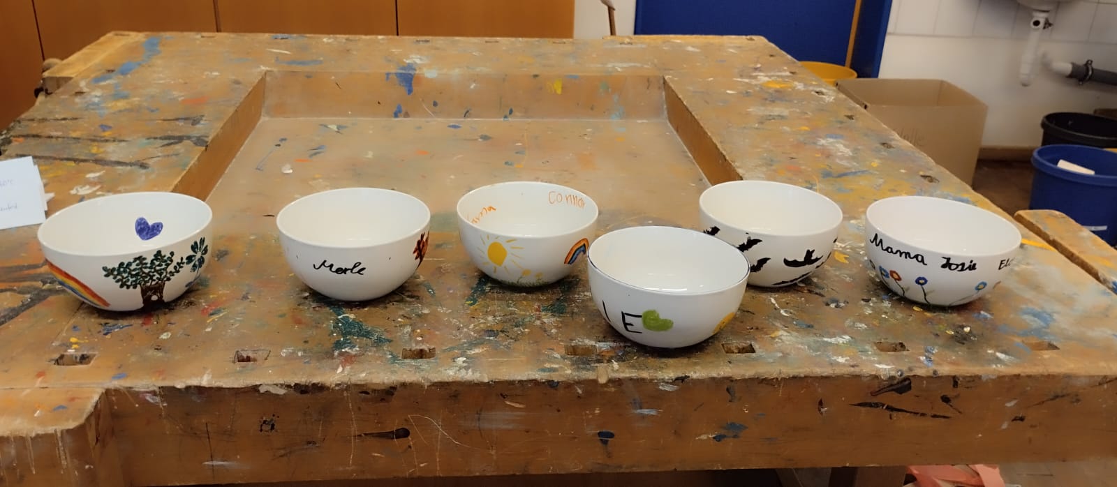 Ergänzend dazu befand sich neben der Bude eine Bastelstation im Pavillon, die stets gut besucht war. Die Bastelstation ermöglichte Kindern, gegen eine Spende verschiedene Anhänger für den Weihnachtsbaum zu gestalten oder aus Papierringen einen Weihnachtsmann bzw. andere weihnachtliche Figuren zum Aufhängen zu basteln. Die Anhänger für den Baum gab es sowohl in Holz- als auch in Salzteigform. Außerdem konnten gegen einen kleinen Festpreis Schlüsselanhängerrohlinge gekauft und mit Mutmachkarten von Caroline von St. Ange sowie mit einem selbst gemalten Bild gefüllt werden.