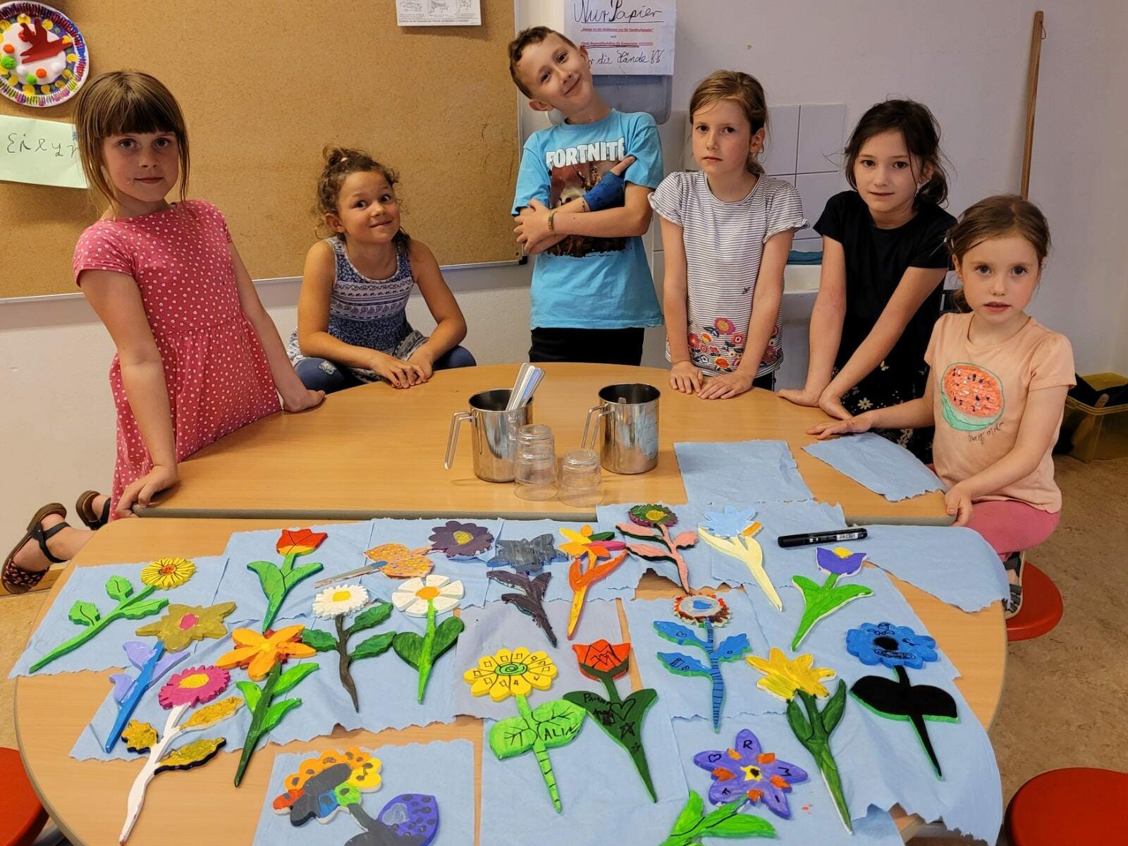 Auch dieser Kurs war ein voller Erfolg. Die Gartenstecker sind bunt und die Kinder glücklich.