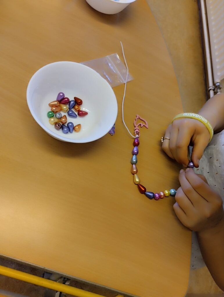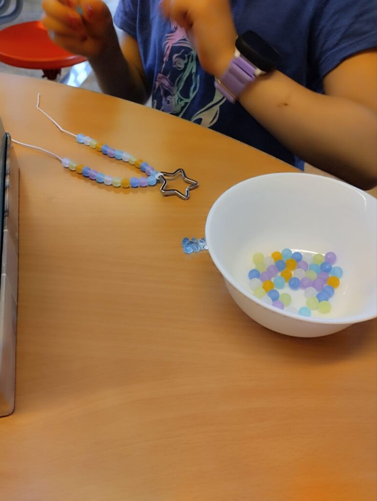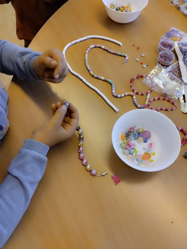 Schöne bunte Perlenarmbänder und -ketten entstanden im April beim Perlenkurs des Schulvereins. Der Kurs war schnell ausgebucht und hat den Kindern viel Spaß bereitet. Bunte Perlen und schöne Anhänger standen zur Auswahl. Am Ende konnten die Kinder die selbgestalteten Schmuckstücke mit nach Hause nehmen.